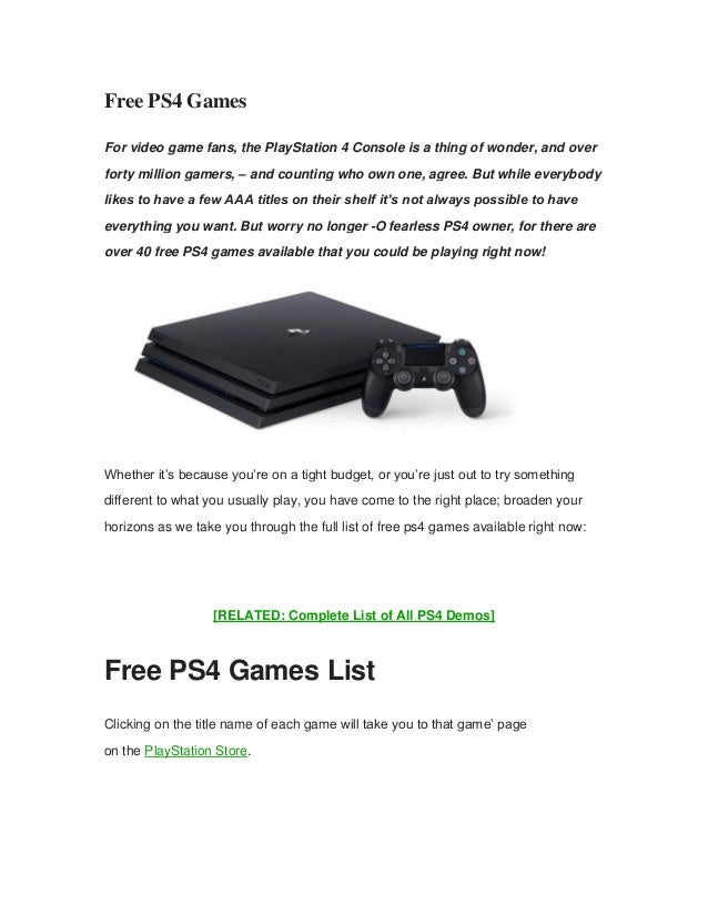 Free Ps4 Games List Pdf